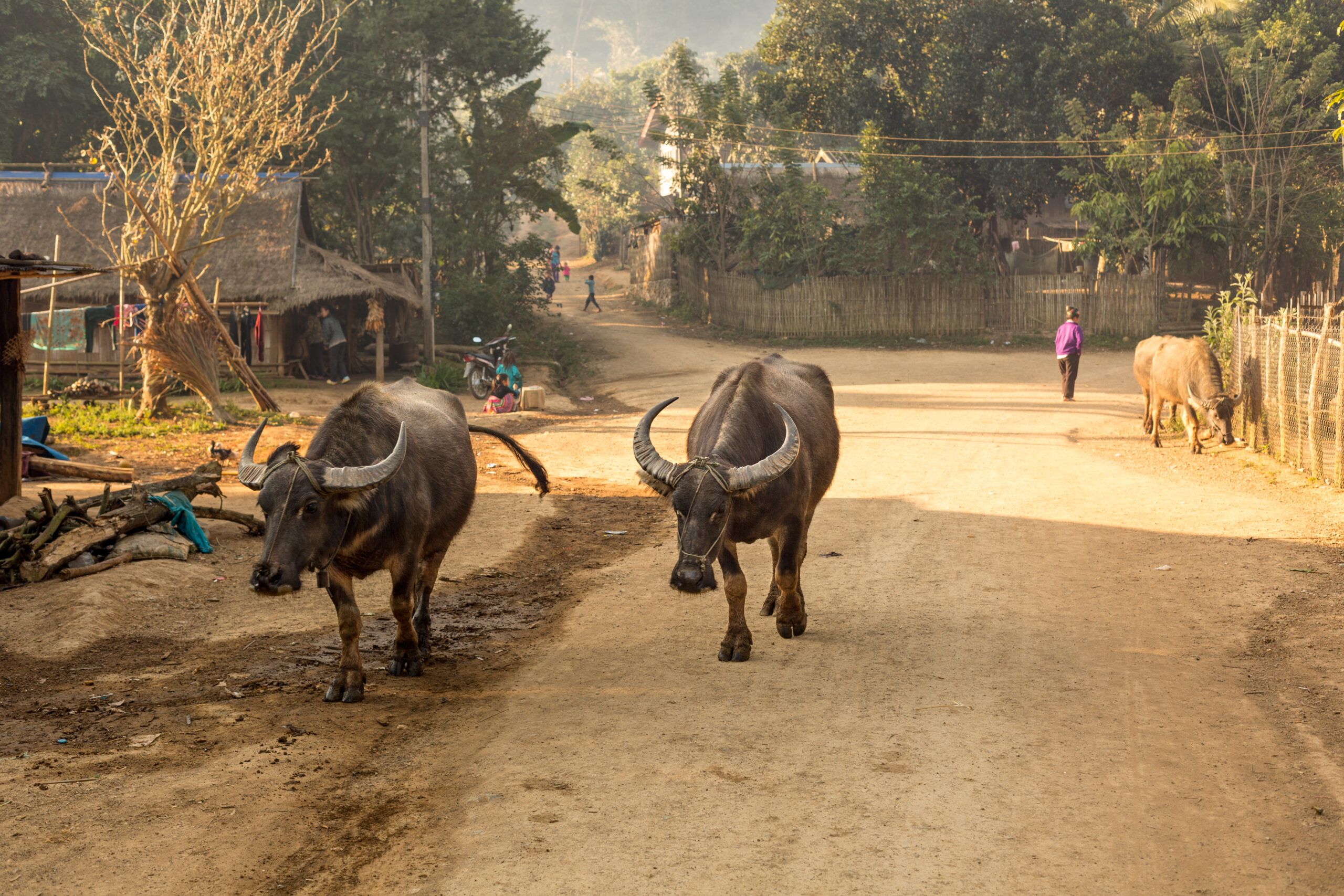 Water buffalos in the village